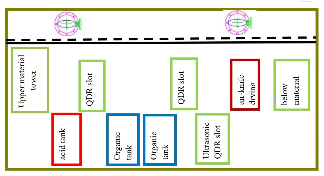 1 # Acid washing -2 # Ultrasonic water washing -3 # Organic washing -4 # Organic washing -5 # Ultrasonic water washing -6 # Ultrasonic water washing -7 # Wind knife