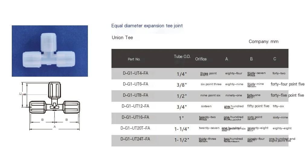 | TUBE SIZE | A(Ø)mm |