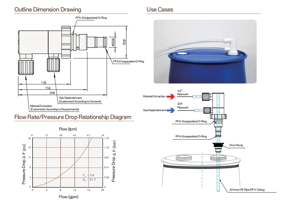 - With a check valve function, it ensures high safety during use, minimizing chemical exposure and contamination, and features a low opening pressure (0.006 MPa).